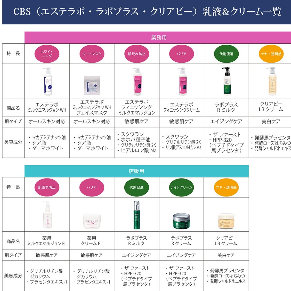水、グリセリン、プロパンジオール、ホホバ種子油、スクワラン、シア脂、オリーブ油、オリーブ油脂肪酸セテアリル、オリーブ油脂肪酸ソルビタン、アルガニアスピノサ核油、ジグリセリン、ザクロ種子油、デイノコッカス培養エキス液、加水分解キャッサバ塊茎エキス、スイカ果実エキス、リンゴ果実エキス、ヒラマメ果実エキス、PCA-Na、乳酸Na、プラセンタエキス、パルミトイルジペプチド-5ジアミノブチロイルヒドロキシトレオニン、パルミトイルジペプチド-5ジアミノヒドロキシ酪酸、セラミド1、セラミド3、セラミド6Ⅱ、フィトスフィンゴシン、カルノシン、トコフェロール、オオアザミ果実エキス、フランスカイガンショウ樹皮エキス、パルミチン酸アスコルビルリン酸3Na、アーチチョーク葉エキス、マカデミアナッツ油ポリグリセリル-6エステルズベヘネート、ダイズ油、レシチン、ベヘニルアルコール、ジメチコン、コレステロール、ラウロイルラクチレートNa、BG、1,2-ヘキサンジオール、エタノール、t-ブタノール、カルボマー、キサンタンガム、(アクリロイルジメチルタウリンアンモニウム/VP)コポリマー、カプリリルグリコール、ソルビン酸K、安息香酸Na、香料