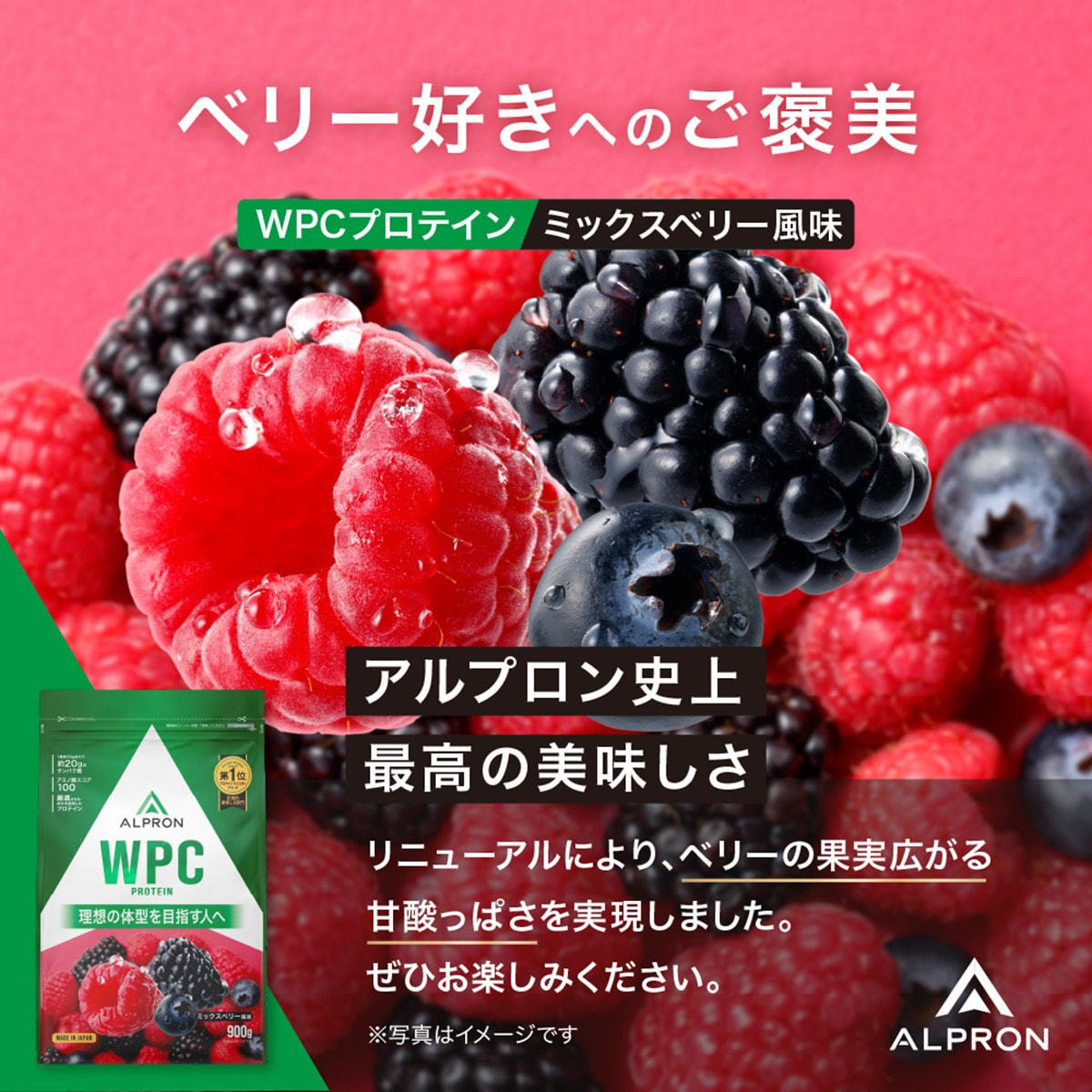 商品名:ALPRON WPC(ホエイプロテイン)ミックスベリー風味 900g