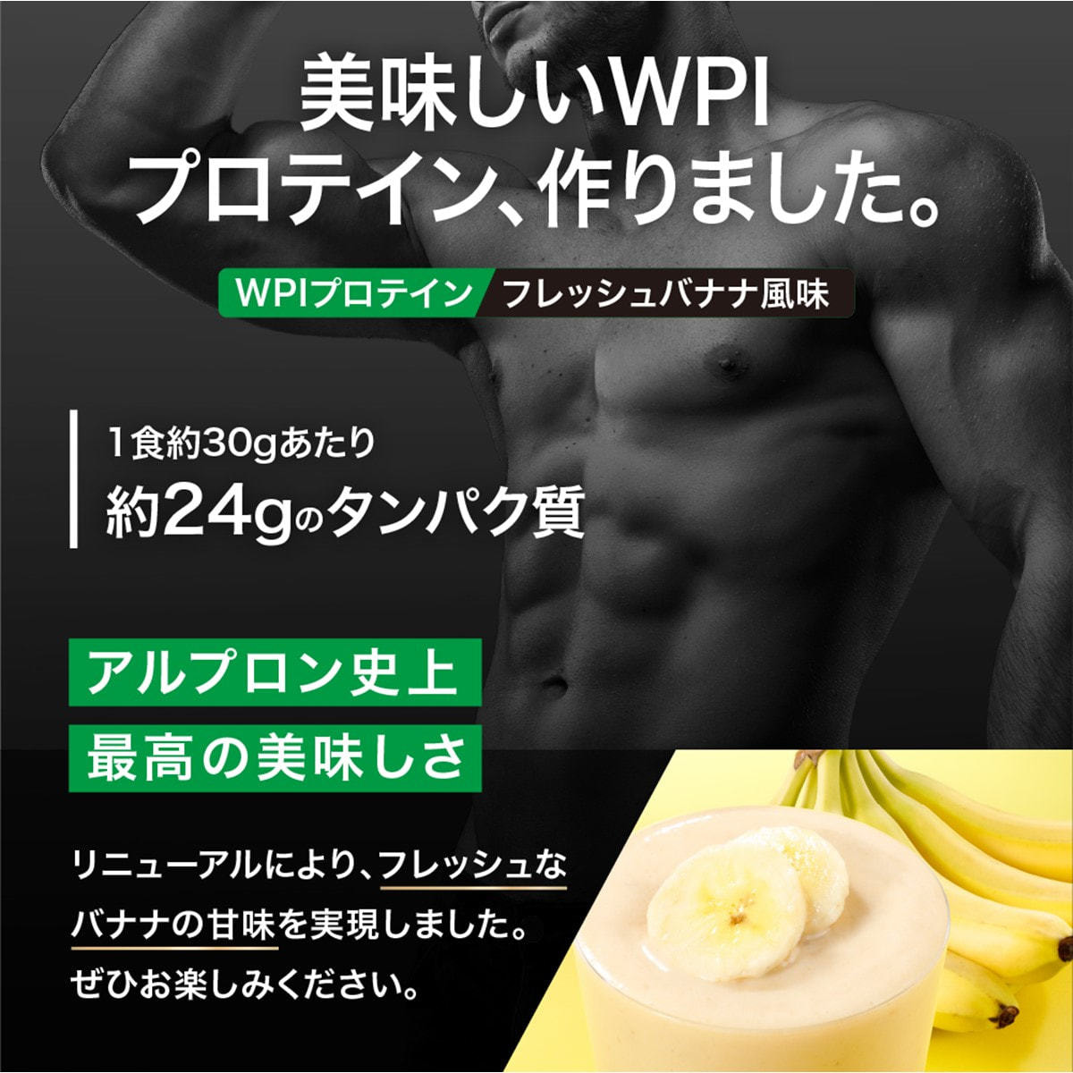 商品名:ALPRON PRO WPI(ホエイプロテイン)フレッシュバナナ風味 900g